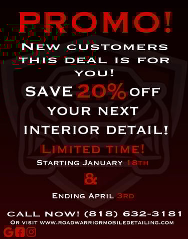 Interior and exterior bundle. Includes Wheel and wheel well clean - Exterior wash and wax - Higher shine - window cleaning. Plus everything in Warrior Detail. Coupe/Sedan $250 | Midsize SUV (5 seater) $280 | Trucks and minivans $320 | Full size SUV (7-8 seaters) $350